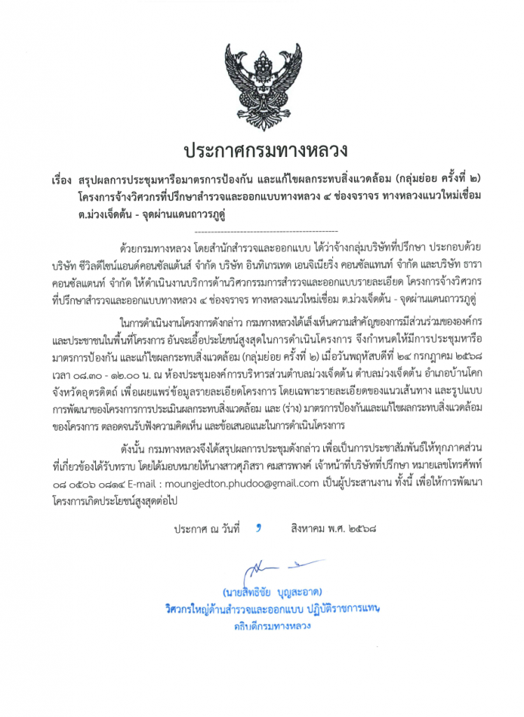 🚧 โครงการสำรวจและออกแบบทางหลวง 4 ช่องจราจร ทางหลวงแนวใหม่ เชื่อม ต.ม่วงเจ็ดต้น – จุดผ่านแดนถาวรภูดู่