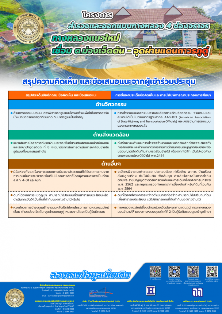 🔸 นายชูเกียรติ โอทาริก วิศวกรโยธาชำนาญพิเศษ สำนักสำรวจและออกแบบ กรมทางหลวงพร้อมคณะกรรมการกำกับการทำงานโครงการฯ ร่วมกับกลุ่มบริษัทที่ปรึกษาประกอบด้วย บริษัท ซีวิลดีไซน์แอนด์คอนซัลแต้นส์ จำกัด บริษัท อินทิเกรเทด เอนจิเนียริ่ง คอนซัลแทนท์ จำกัด และบริษัท ธารา คอนซัลแตนท์ จำกัด